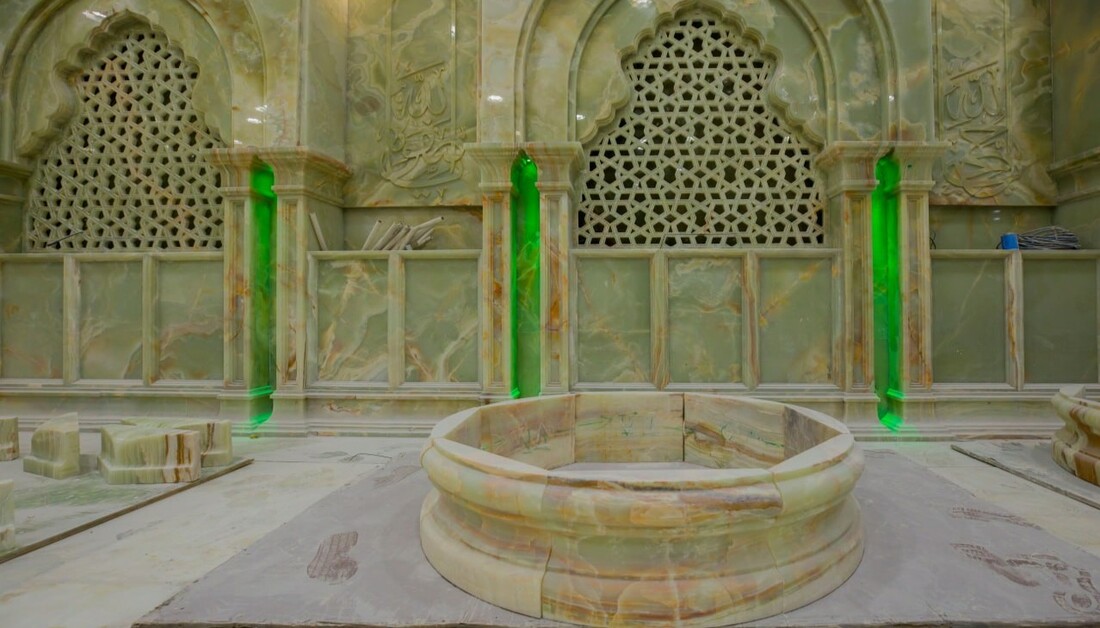 بالصور: كوادر الفنية التابعة الى العتبة الحسينية تواصل العمل في مشروع سرداب القبلة الكبير